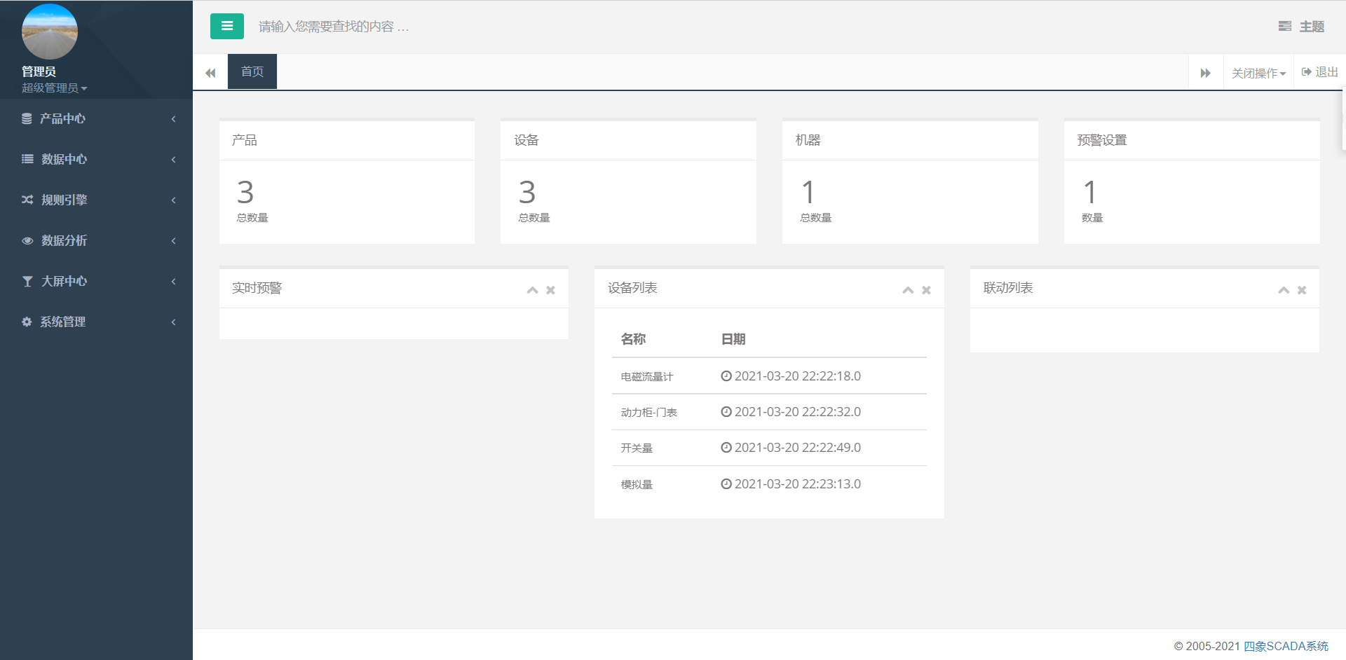 同时,四象SCADA系统还自带数据中心大屏设计功能,可以任意实现需要显示的大数据大屏展示,可为APP/WEB提供强大的数据支撑。